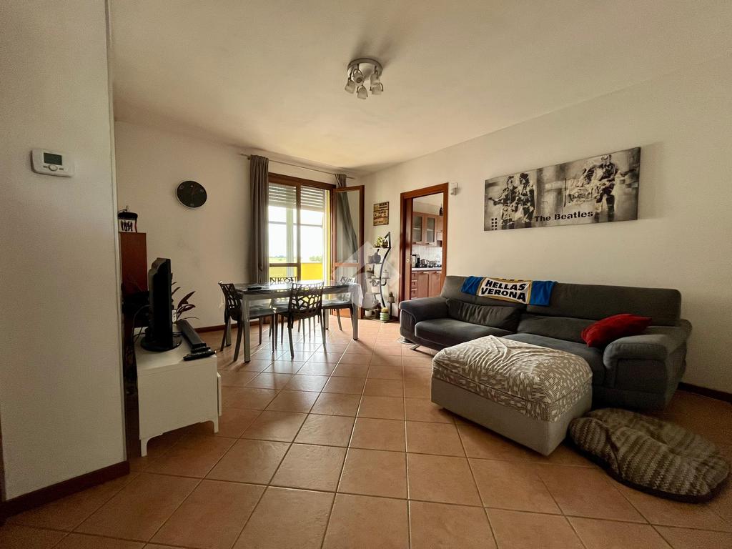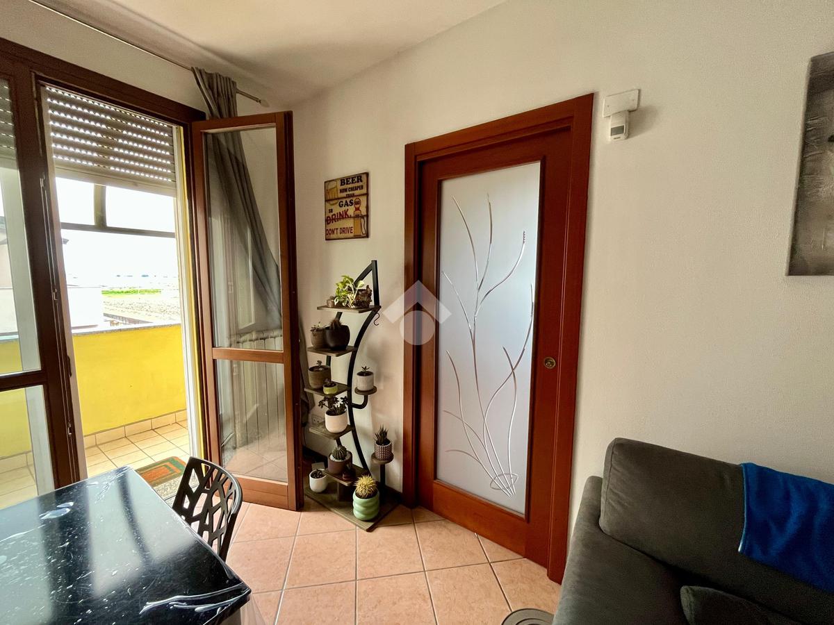 La zona giorno si apre su un terrazzo, ideale per momenti di relax all'aperto. La cucina è separata, garantendo praticità e comfort. Le due camere da letto sono spaziose e luminose, mentre il bagno finestrato con doccia è dotato di finiture moderne.