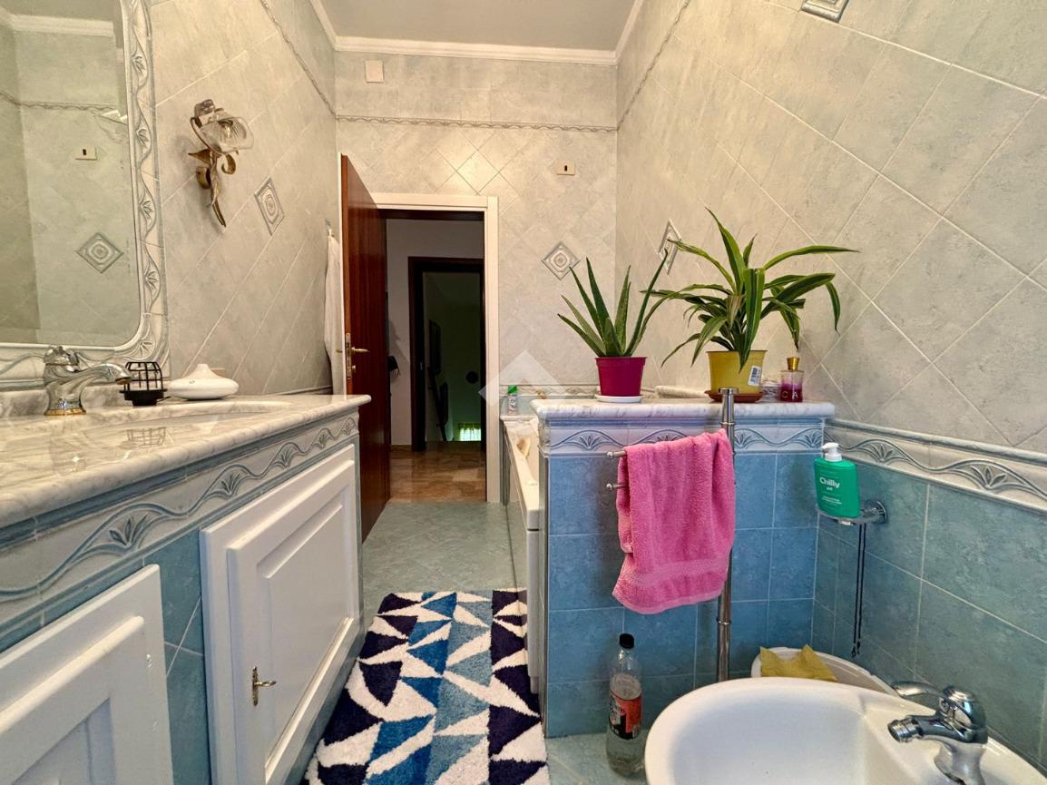 Il piano notte è arricchito da un elegante bagno finestrato, dotato di vasca e recentemente ristrutturato, che offre un ambiente confortevole e funzionale, perfetto per godere di momenti di relax. La qualità dei materiali e delle finiture contribuisce a rendere questa zona della casa davvero accogliente.