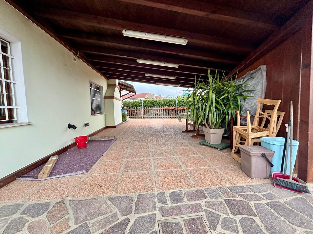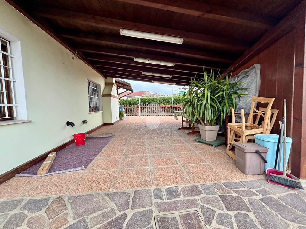 L’ampio scoperto di proprietà che circonda la villa è perfetto per chi ama godere dell’aria aperta, per chi ha bambini o animali domestici, o semplicemente per chi desidera un po’ di privacy in un ambiente sereno e tranquillo. Il giardino è curato in ogni dettaglio, con una siepe che ne delinea i confini, creando un’atmosfera riservata e accogliente.